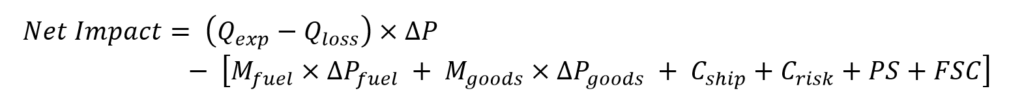 سيتم في هذا القسم بناء نموذج رياضي دقيق يحلل صافي الأثر الاقتصادي لليبيا نتيجة إغلاق مضيق هرمز. كما هو معلوم إغلاق المضيق يخلق حالة متناقضة لليبيا: