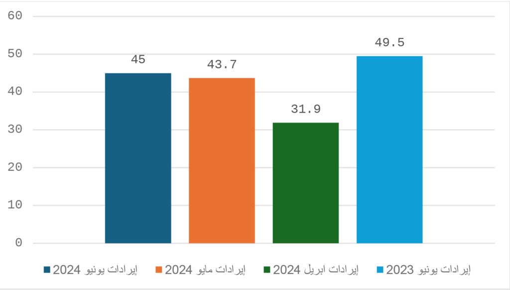 شكل 2: انخفاض إجمالي الإيرادات مقارنة مع الأشهر السابقة ومع نفس الفترة لسنة 2023
